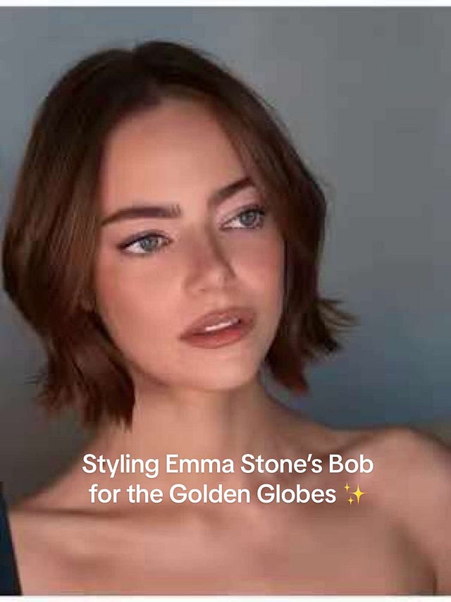 That dual existence—styling celebrities on red carpets while running a salon—constantly informs how she builds. Stone’s Golden Globes bob is a perfect example. The look was polished enough for a major red carpet moment but felt effortless—the kind of style that makes people think, I could do that at home. Roszak shared exactly which products she used on TikTok—RŌZ Milk Hair Serum to prep, Air Thickening Spray for movement and hold, and Evergreen Style Cream to finish—showing viewers how to replicate the style at home.