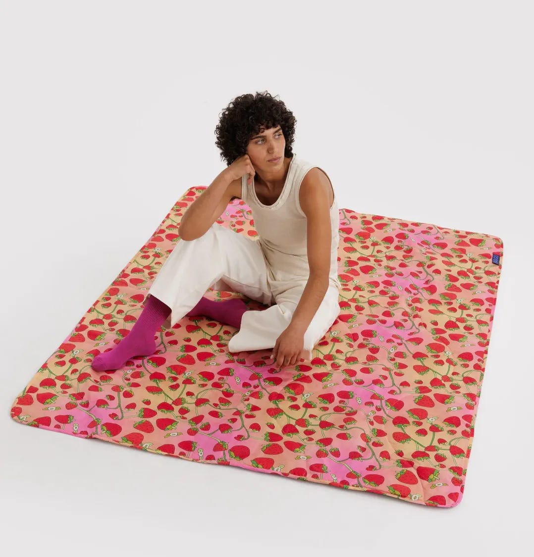 Fire pits (+110%) and picnic blankets (+74%): The vibe-setters—fire pits for late-night hangs and picnic blankets for turning any patch of grass into dinner plans. Baggu sells picnic blankets that pack light and look good doing it.